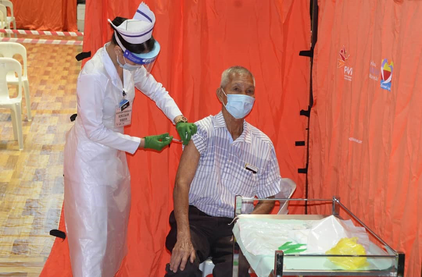 A man gets vaccinated at Sibu Indoor Stadium in Sarawak as part of Malaysia's Covid-19 vaccination drive.