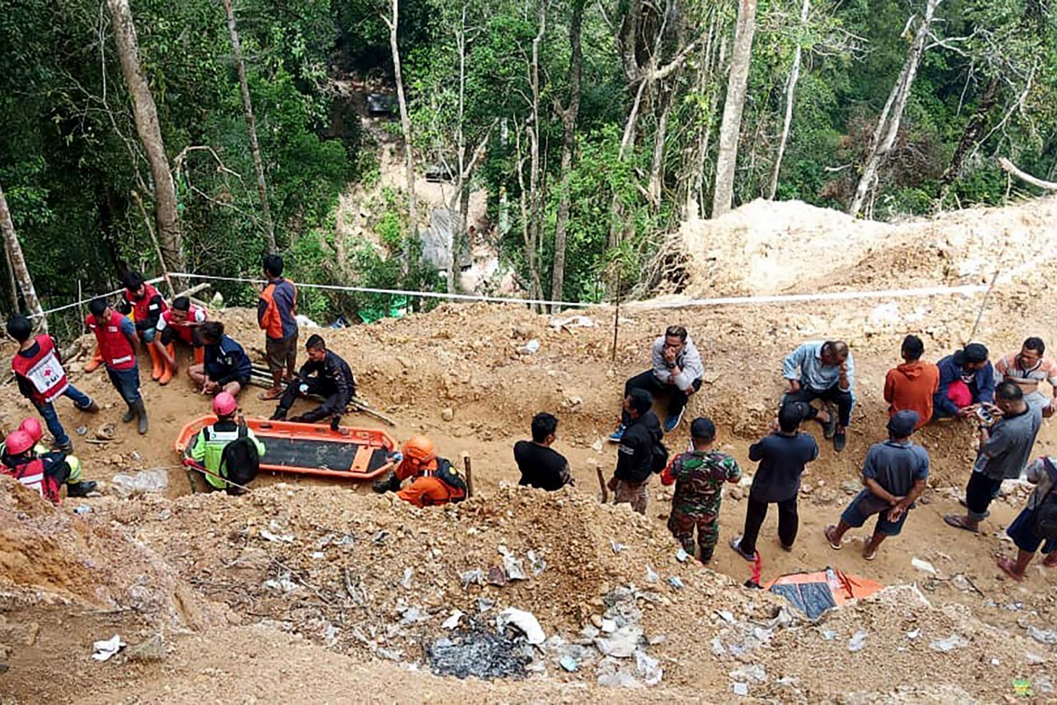 But the rescue effort at the remote site on Indonesia's Sulawesi island was hampered by steep terrain and unstable soil conditions after the collapse triggered a landslide.