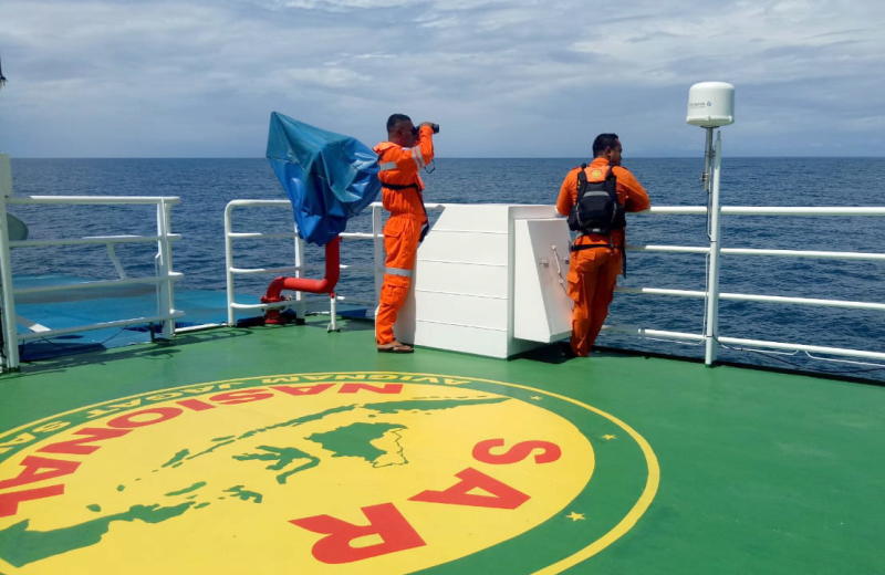 Indonesia's National Search and Rescue Agency members during a search and rescue operation after a cargo ship sank in Banggai Laut Regency waters in Central Sulawesi, Indonesia, on June 5, 2019.
