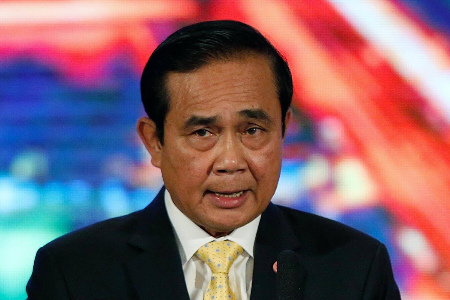 Thai Prime Minister Prayut Chan-o-cha speaks to media during the announcement of his government's achievements over the past two years at the Government House in Bangkok, Thailand, on Sept 15, 2016.