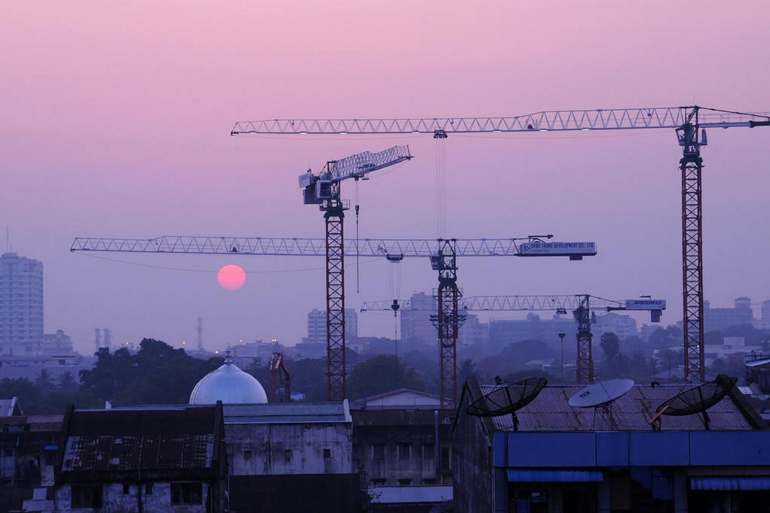 Cranes seen along Yangon's construction skyline in 2015.