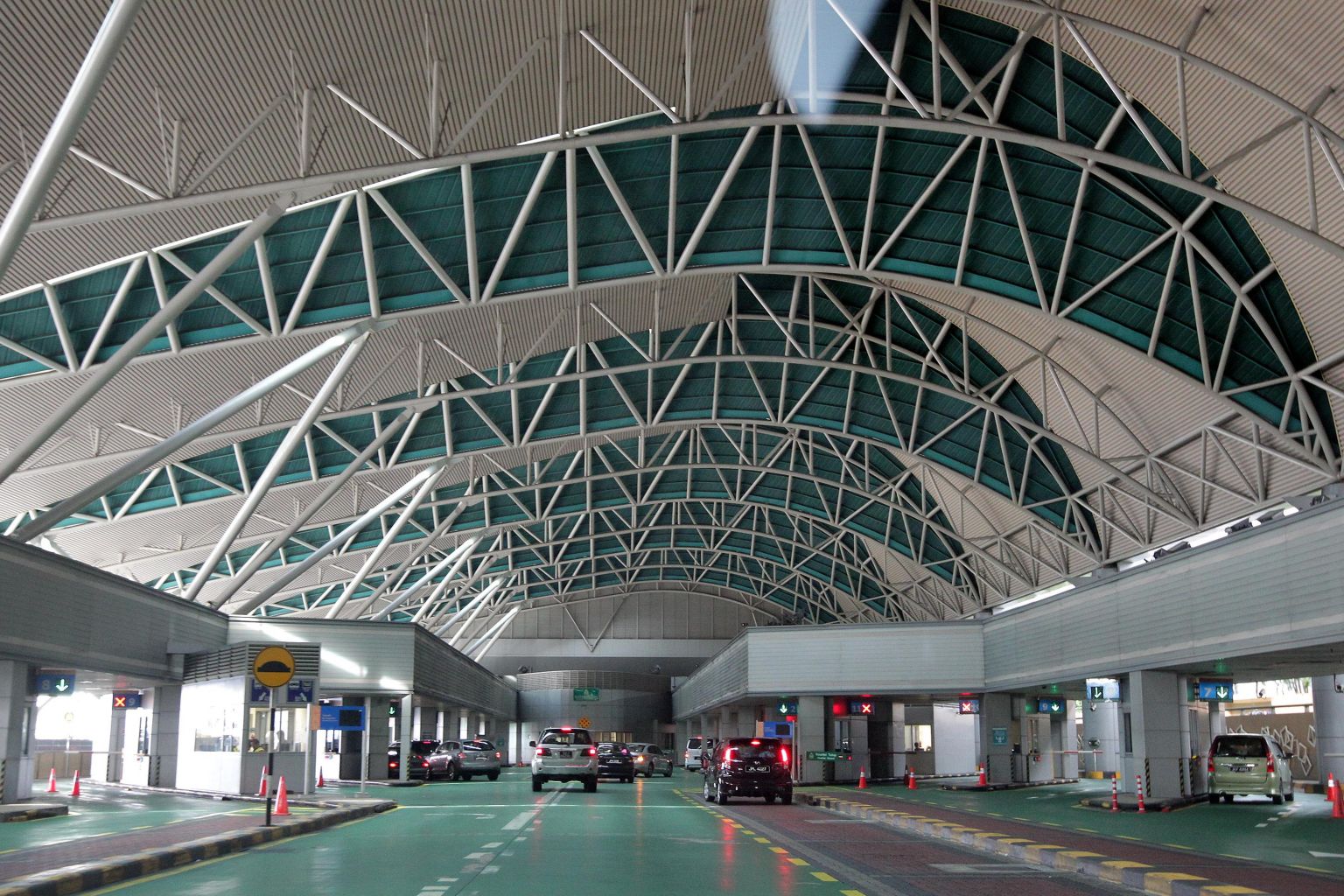 Cars heading to Singapore pass through the toll collection booths at the Iskandar Customs, Immigration and Quarantine Complex in Johor Baru.