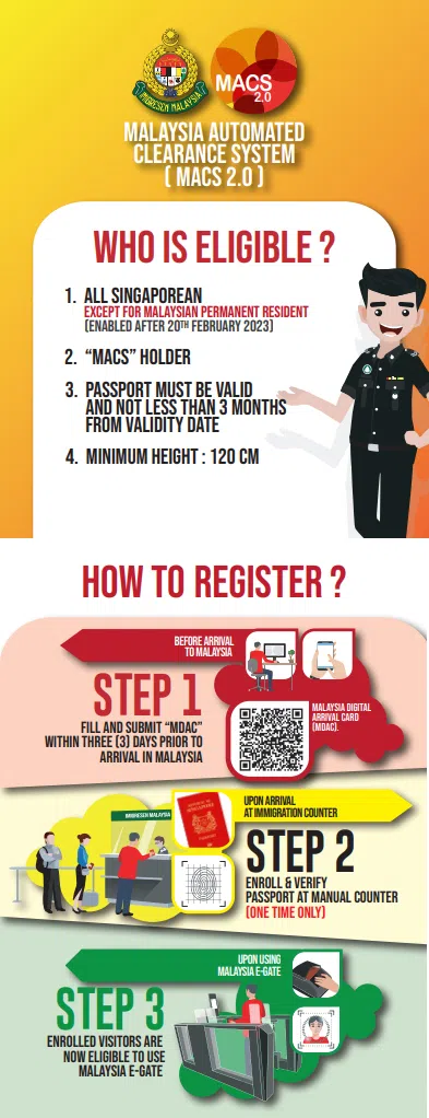 “In addition to that, Singapore visitors need to submit the Malaysia Digital Arrival Card (MDAC) online three days before travel,” he said, adding that first-time users also need to verify their biometrics at the immigration counter.