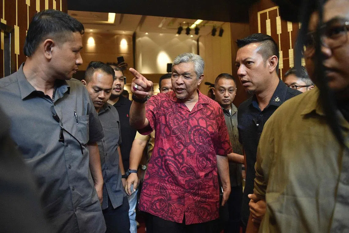 Umno president Ahmad Zahid Hamidi (centre) leaves after a press conference in Kuala Lumpur, on Nov 21, 2022.