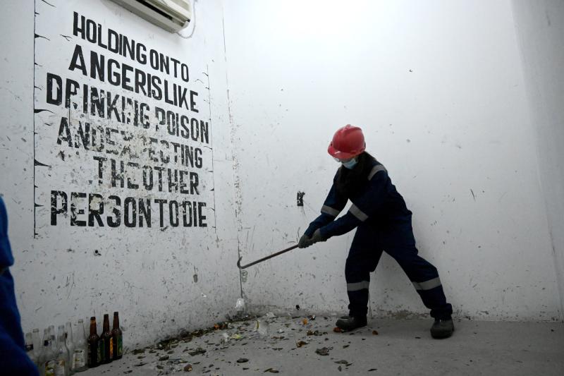 JAKARTA (AFP) - Armed with crowbars and wearing protective gear, three women assembled at a Jakarta stress clinic survey the cluster of bottles they are about to smash to pieces.