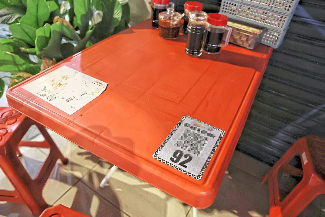 A table that does not have a DBKL sticker to show that the stall owner has obtained a permit to place furniture outside the stall’s premises.