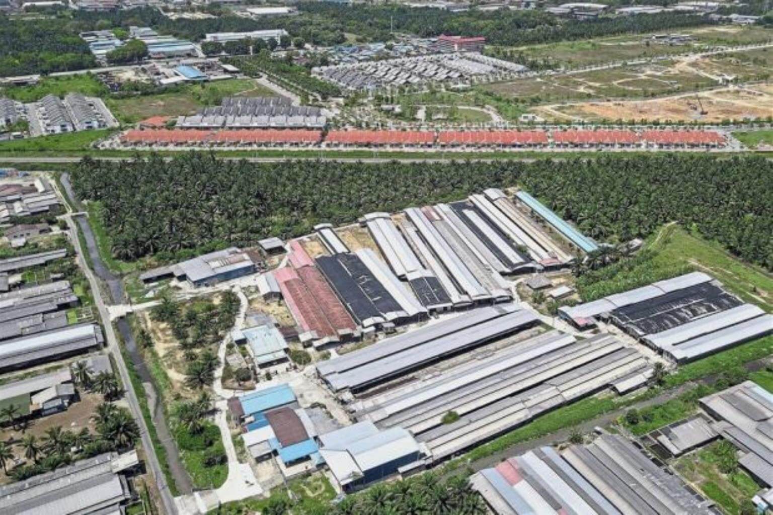 An aerial photo showing the close proximity of the farms and houses in the Hijauan Valdor area (top) separated only by a railway track in Simpang Ampat, Nibong Tebal.