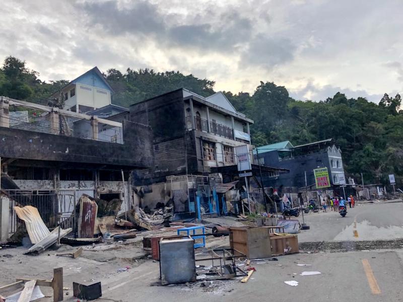 A photo taken on Aug 30 shows torched shops in Jayapura in Indonesia's Papua province. Anti-government protests began in the region on Aug 19 over the alleged racist treatment of native Papuans.