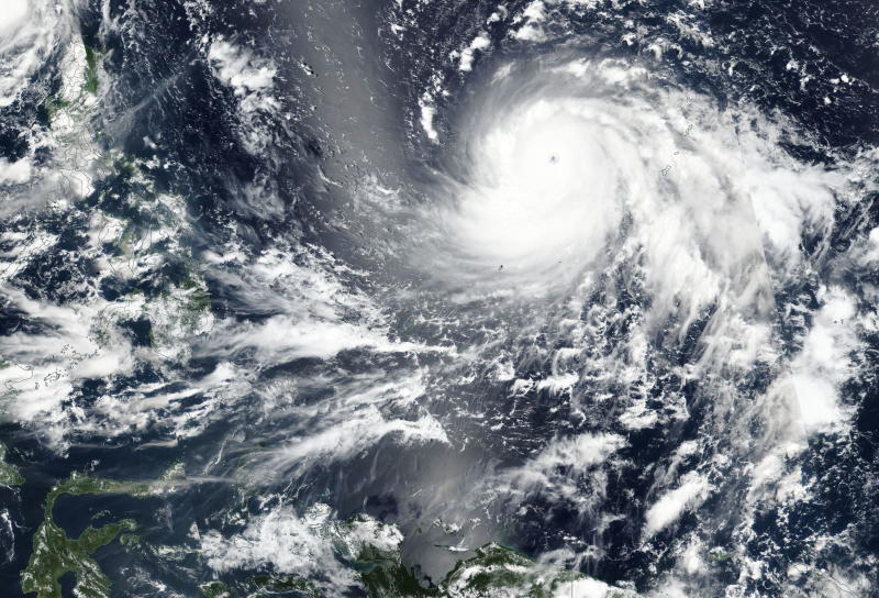 A satellite image acquired by the Visible Infrared Imaging Radiometer Suite on the Suomi NPP of Super Typhoon Mangkhut approaching Philippines, on Sept 11, 2018.
