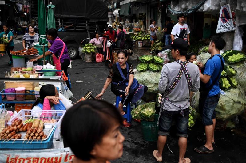 A fresh produce and flower market in Bangkok. The Thai baht is the world's top performer against the dollar over five years, hurting export competitiveness and putting the economy on course for the weakest growth since 2014.