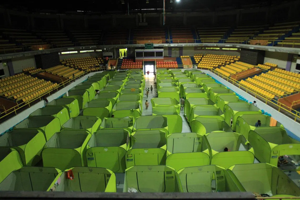More than 400 people were squeezed into the provincial government building in the capital Virac, with new arrivals being sent to a gymnasium, provincial disaster officer Roberto Monterola told AFP.
