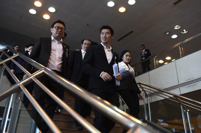 Billionaire Thanathorn Juangroongruangkit's (centre) youth-oriented Future Forward Party has been hit by more than a dozen legal cases since its success in elections held in March 2019.