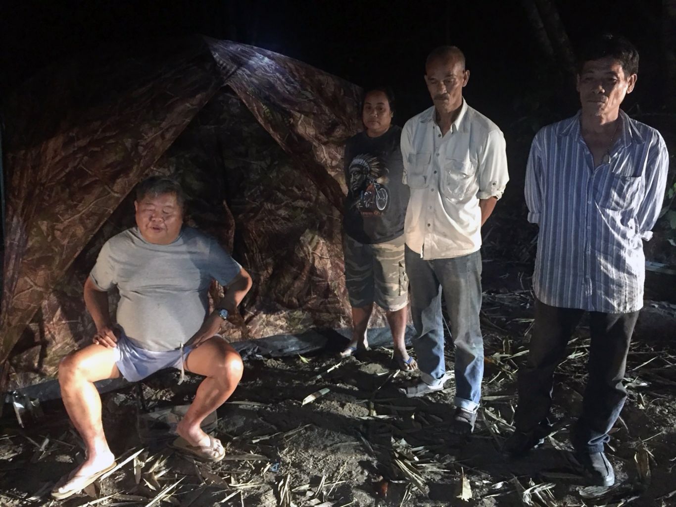 Thai construction tycoon Premchai Karnasuta (left) and three other suspects after they were arrested by park rangers in Thungyai Naresuan national park in Kanchanaburi province on Feb 4, 2018.