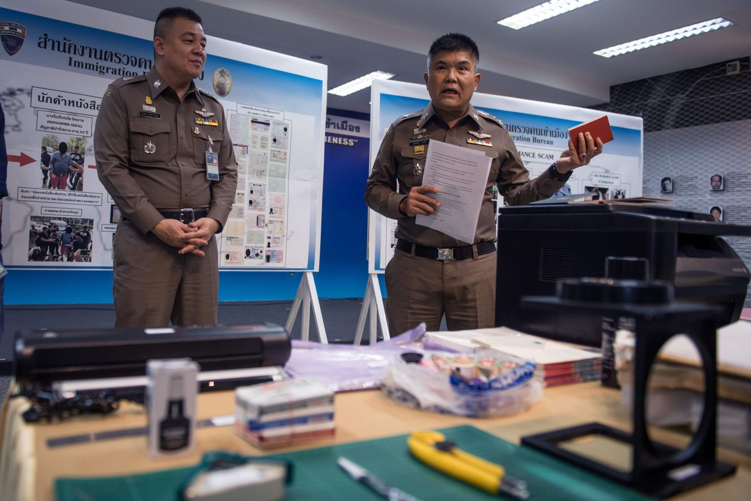Commander of the Immigration Bureau Lieutenant General Suttipong Vongpint (right) said the forger was working on faking documents for a long time.