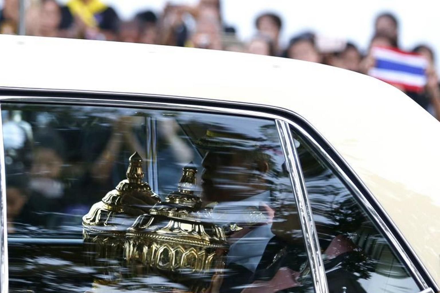 On Sunday, the late king's bones were moved to the Chakri Throne Hall, where royal relics are kept within the Grand Palace in a ceremony that involved senior monks from temples across the country. His son, the new King Maha Vajiralongkorn, led the religious rites.
