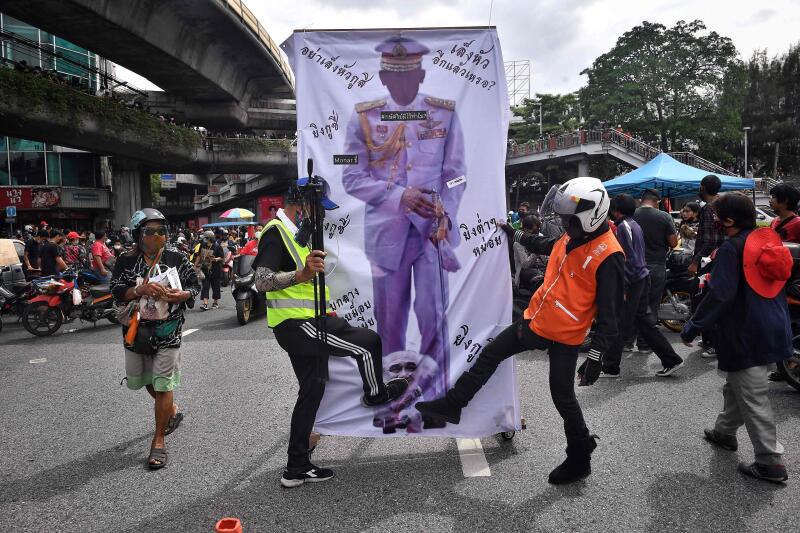 In this photo taken on Aug 7, 2021, pro-democracy protesters are demontrating against Thai prime minister Prayut Chan-Ocha’s and King Maha Vajiralongkorn in Bangkok.