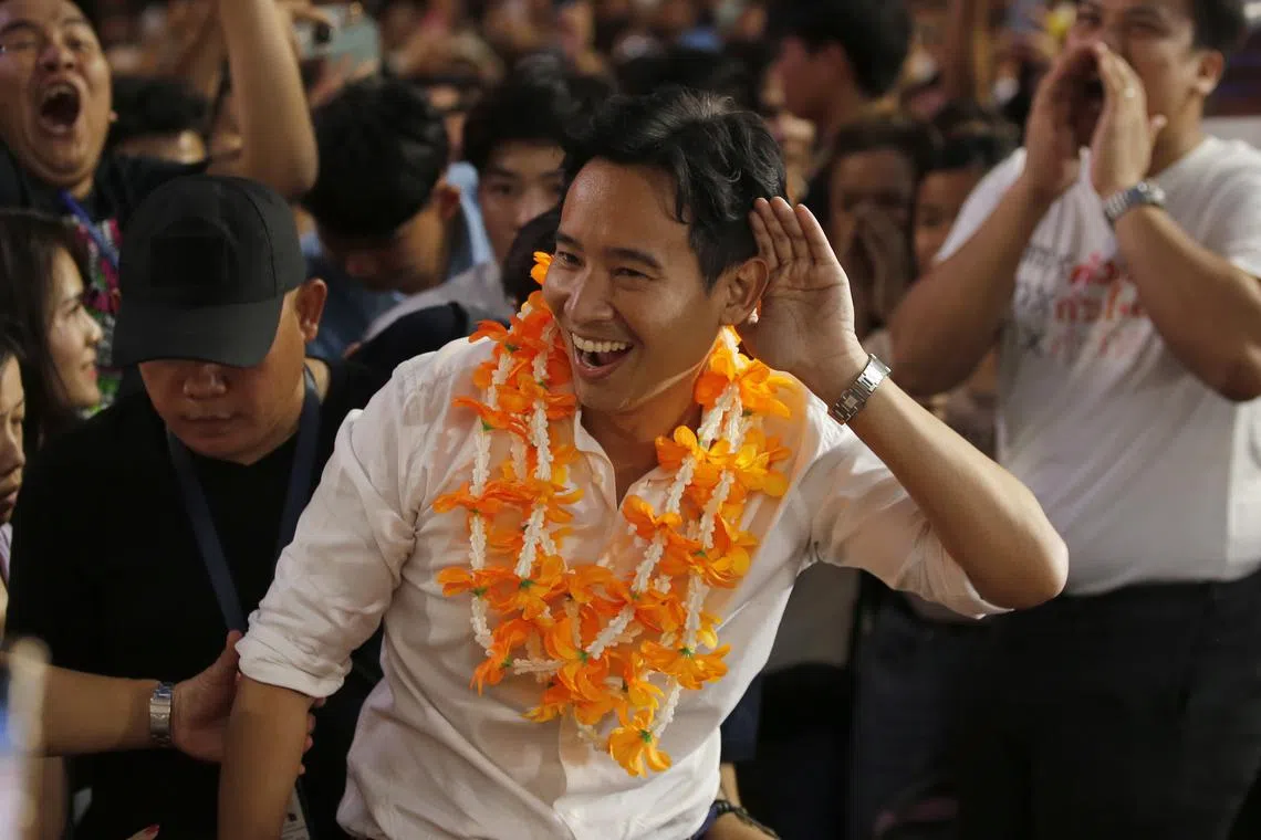 Move Forward’s platform includes legalising same-sex marriage, scrapping mandatory military conscription, removing the armed forces from politics, rewriting the Constitution, and boosting the minimum daily wage to 450 baht (S$17.50).