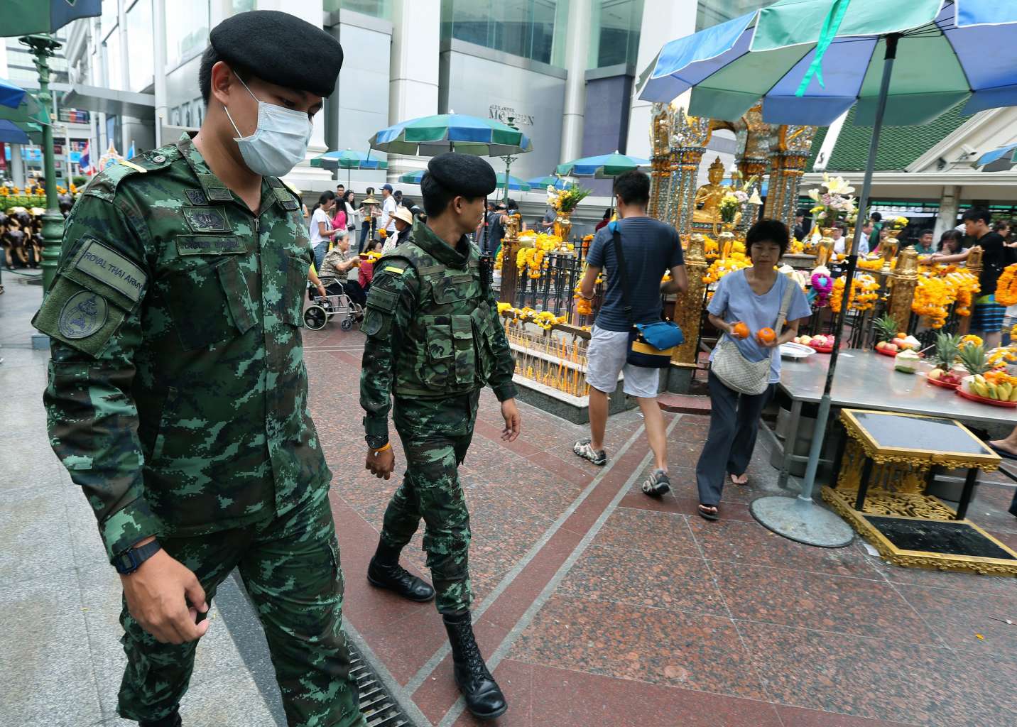 Thai security forces patrolling near the Erawan Shrine in Bangkok on Aug 14, 2016.
