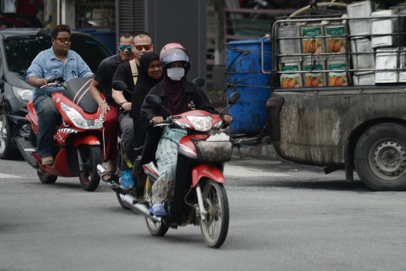 A motorist wearing a face mask during a commute through Thailand's southern province of Narathiwat on Sept 20, 2019. Pollution spikes caused by industrial emissions, construction, crop burning and vehicle fumes have rattled Thailand in recent years.