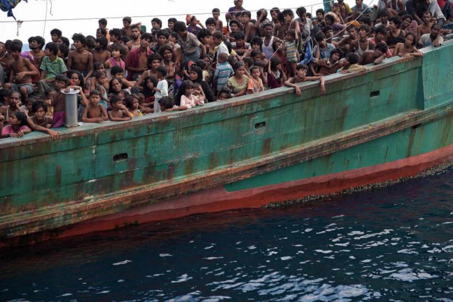 Rohingya migrants in a boat drifting in Thai waters off the southern island of Koh Lipe in the Andaman Sea.