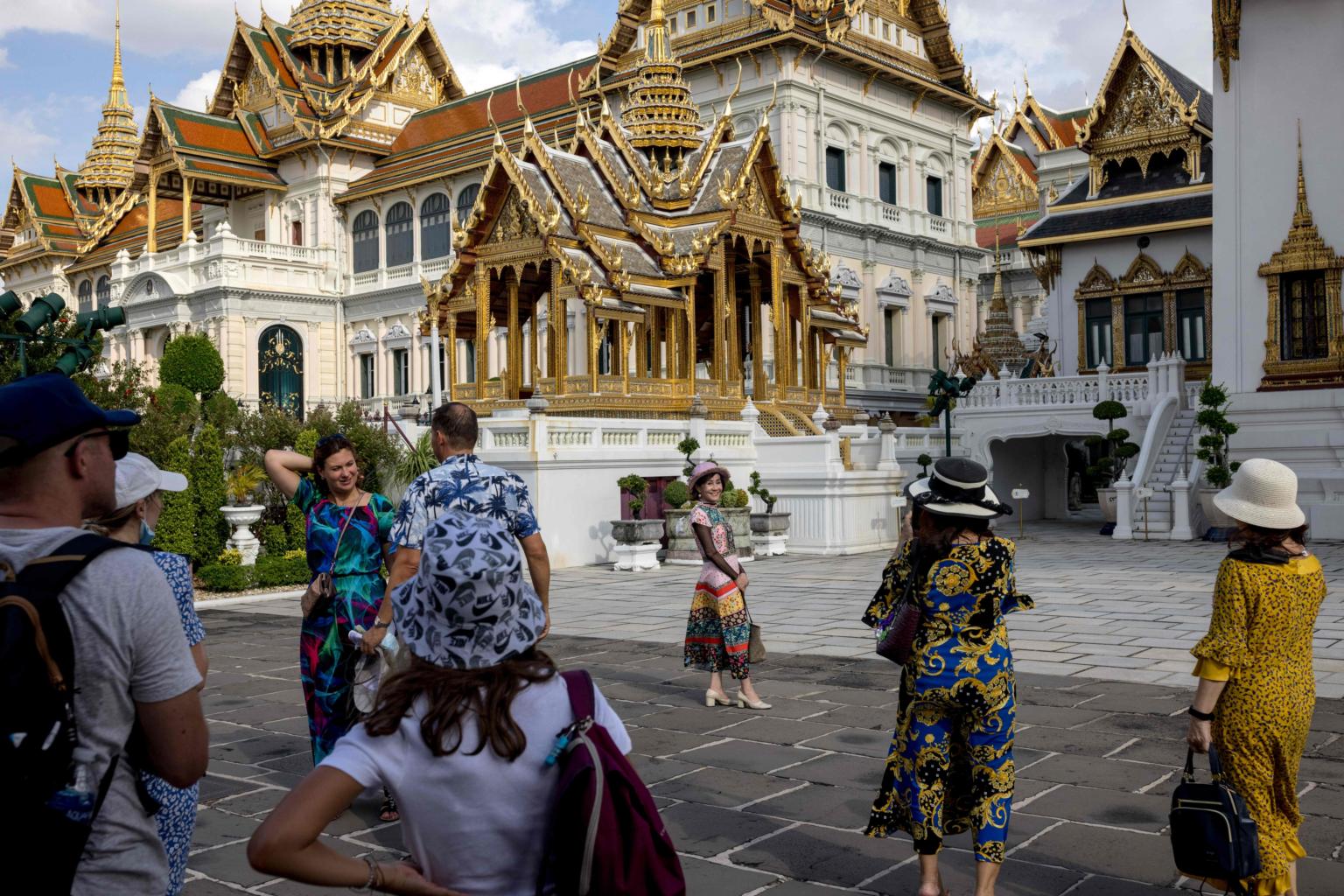 Tourists taking pictures in the Grand Palace in Bangkok on July 18, 2022.