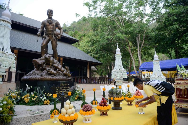 The boys from "Wild Boars" youth football team gave alms to Buddhist monks at a ceremony in Mr Saman Gunan's honour, also offering a feast to cave spirits.