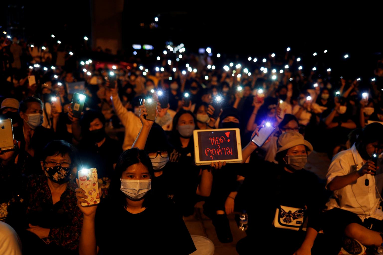 A group of about 20 people submitted a letter to the military on Friday asking it to monitor anti-monarchy statements at the protests.