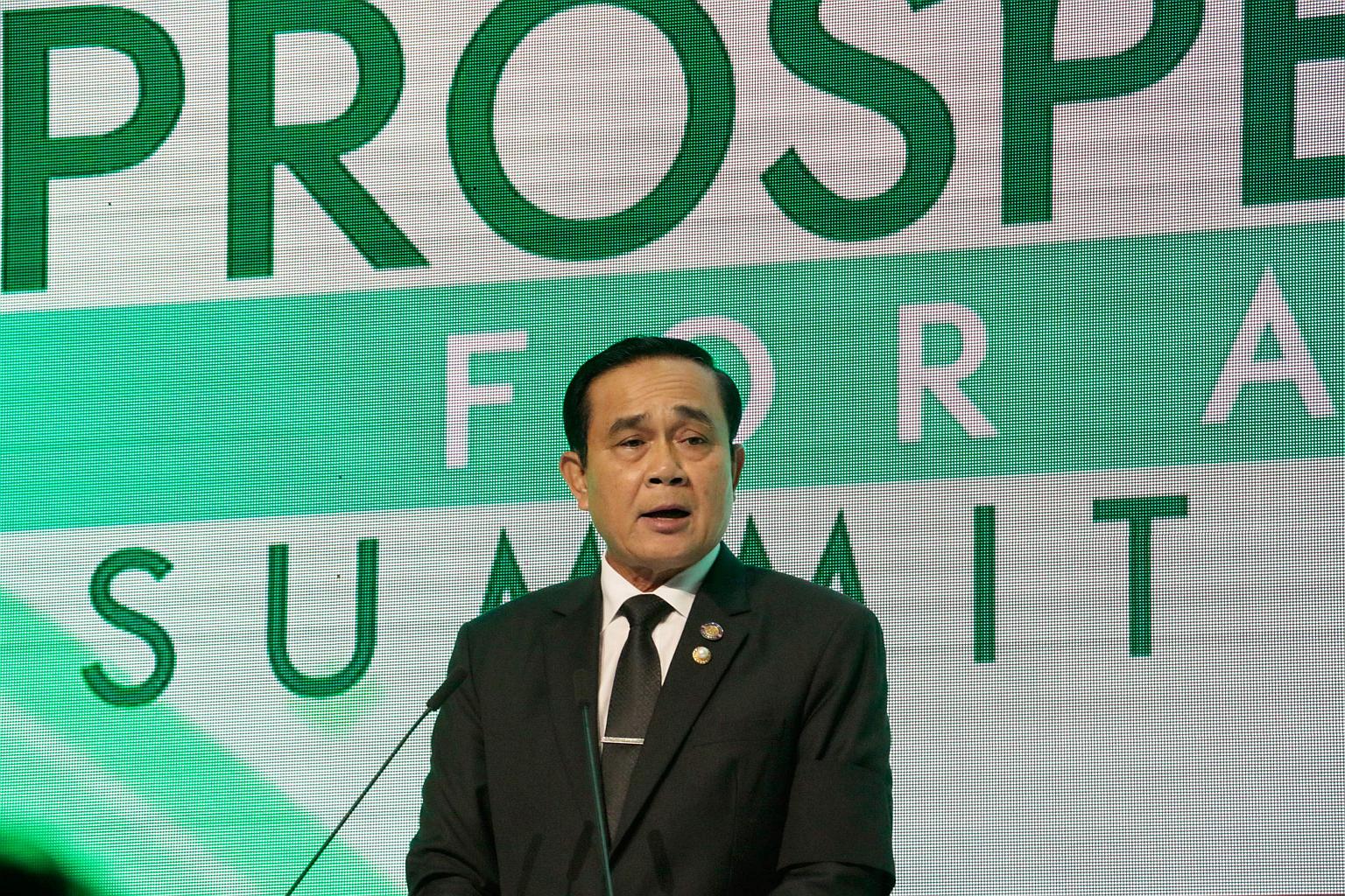Thailand's Prime Minister Prayut Chan-O-Cha speaks at a forum on the sidelines of the Association of Southeast Asian Nations (ASEAN) summit in Manila on April 28, 2017.