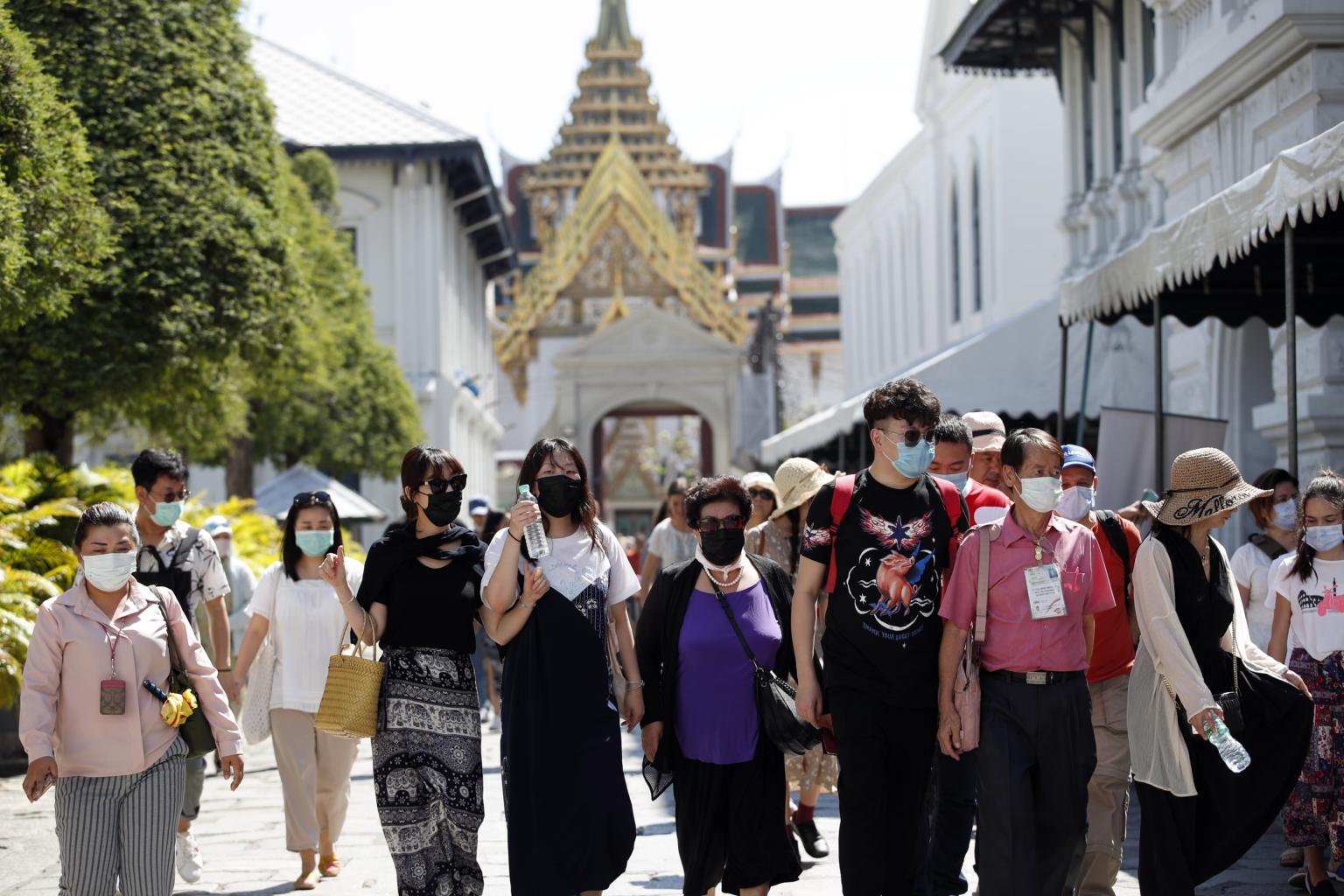 Tourists wearing masks visiting the Grand Palace in Bangkok, Thailand, on Jan 27, 2020.