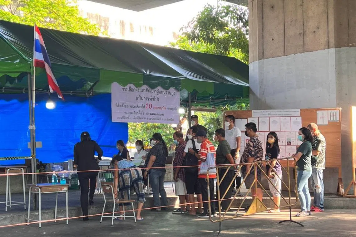 Residents queueing to vote in Bangkok when the polls opened at 8am local time on May 14.