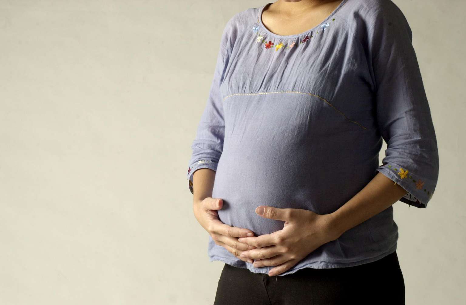 A posed photo of a pregnant woman.