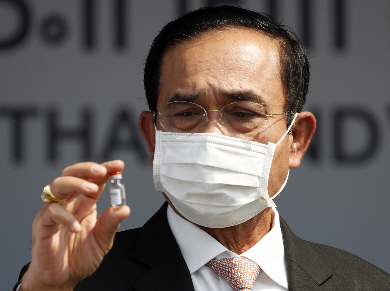 Thai Prime Minister Prayut Chan-o-cha holding a sample of the Sinovac vaccine on Feb 24, 2021.