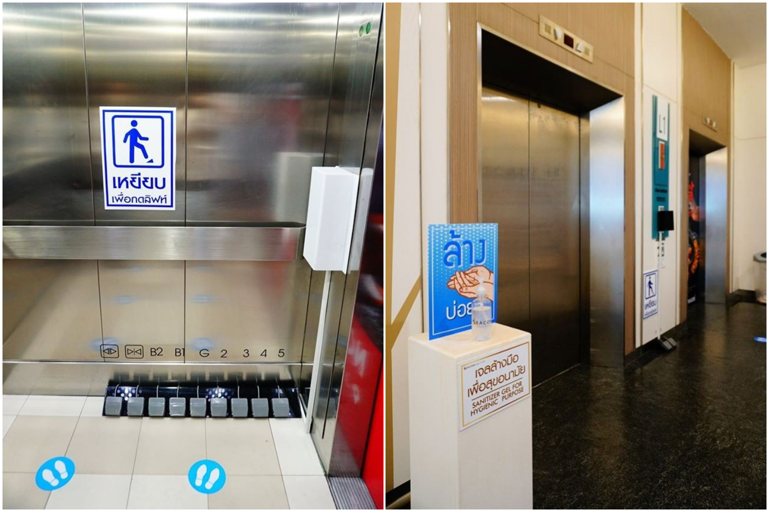 Seacon Square shopping mall has installed foot-operated control panels in lifts and hand gel dispensers in front of lifts and escalators.