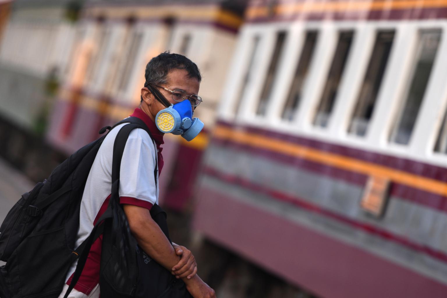 A man wearing a protective face mask is seen at a train station in Bangkok on March 27, 2020.