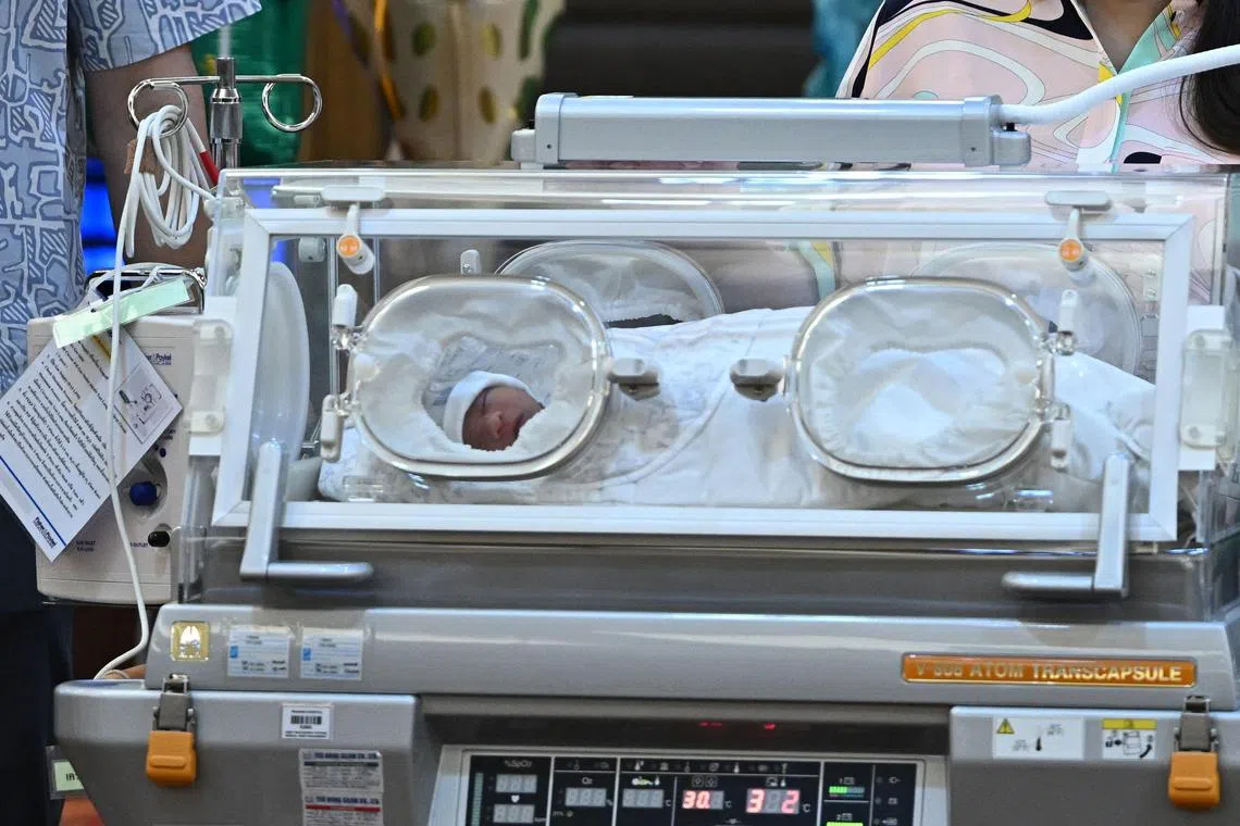 Ms Paetongtarn Shinawatra’s newborn son Prutthasin Sooksawas at the Praram 9 hospital in Bangkok on May 3, 2023.