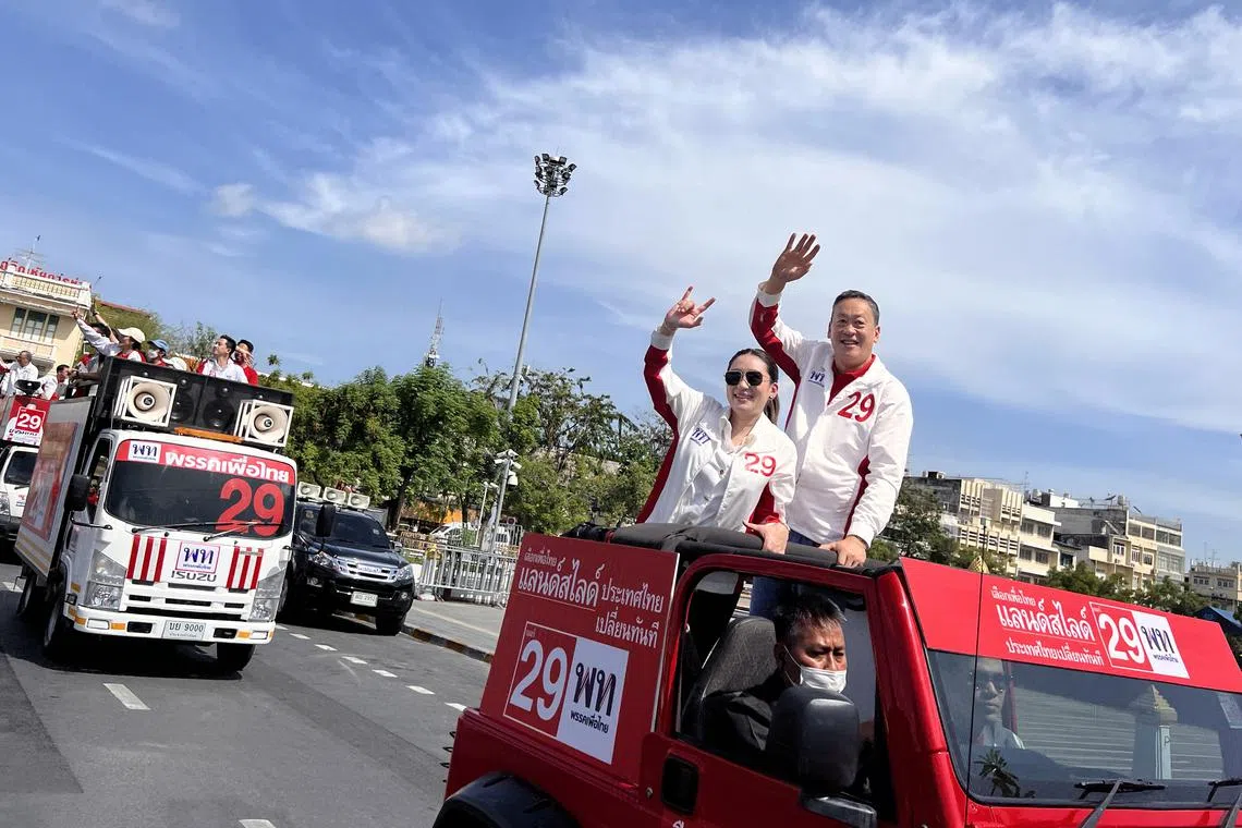 Ms Paetongtarn Shinawatra and Mr Srettha Thavisin campaigning in Bangkok in May.
