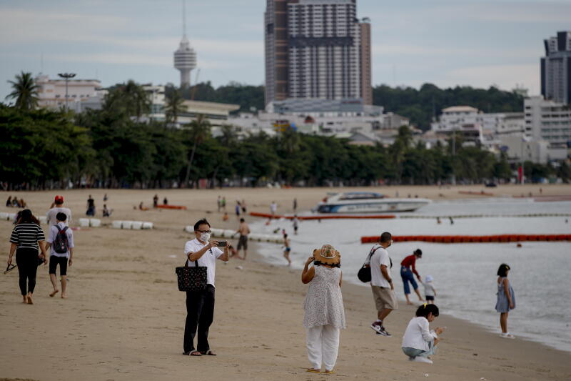 Visitors at a beach on the first day of reopening in Pattaya, Thailand, on June 1, 2020.