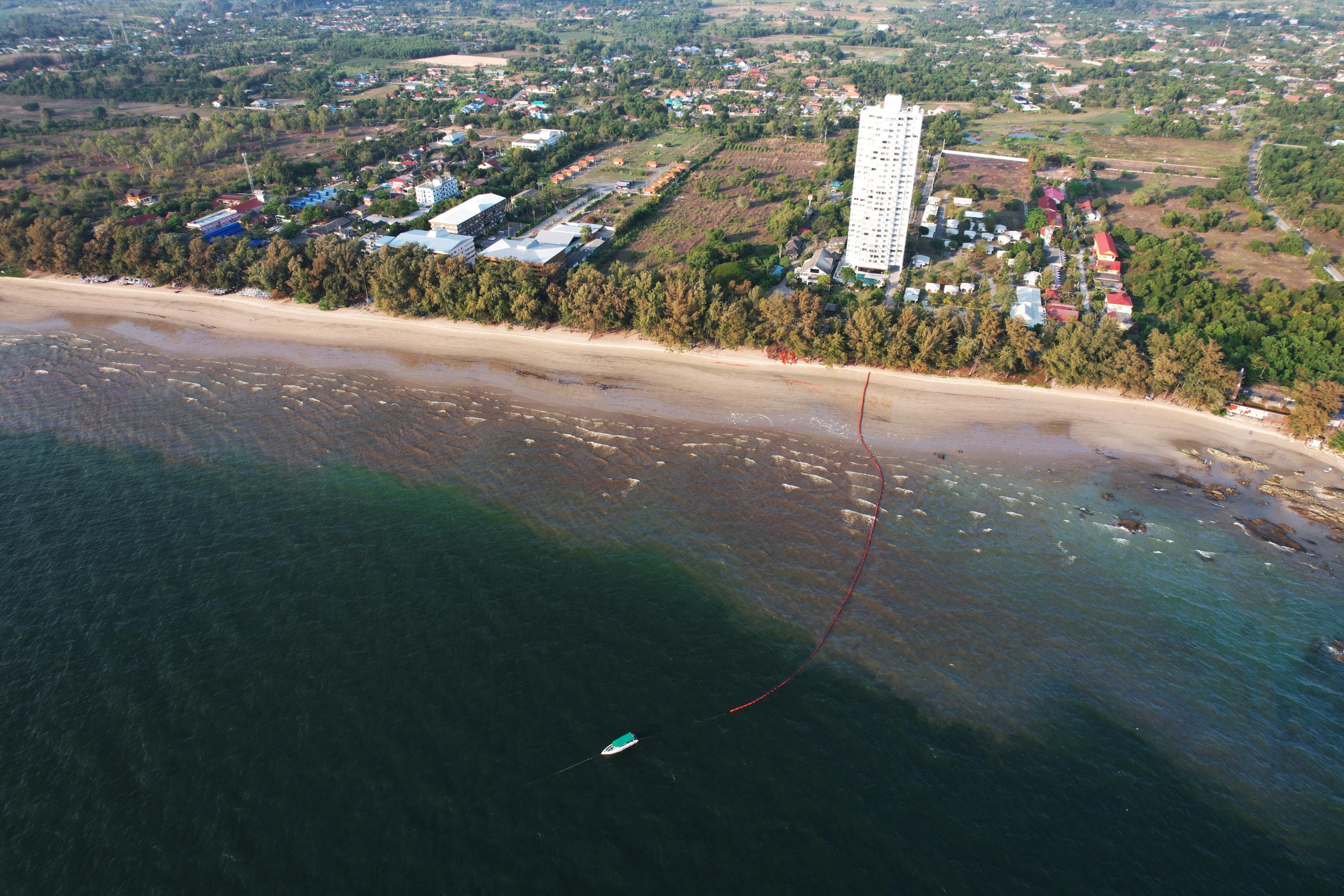 It was patched up within a day but not before it damaged a beach area in Rayong province and threatened corals in the shallow waters.