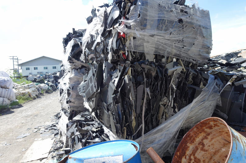 Piles of old computer parts stacked inside a factory compound in Thailand's Samut Prakan province. The factory was raided for processing electronic waste illegally.
