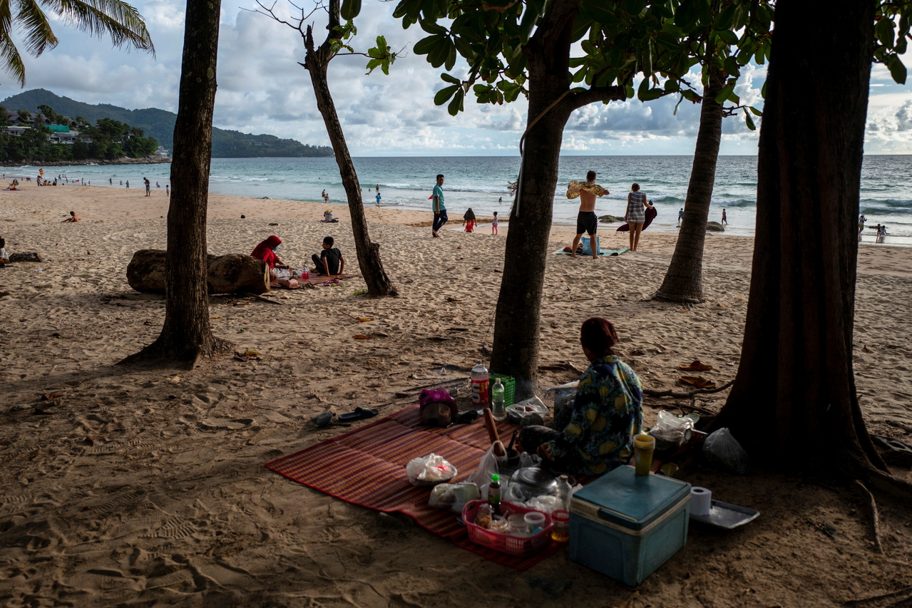 People at a beach in Phuket, on Sept 19, 2021. The island successfully reopened to vaccinated visitors in a pilot scheme.