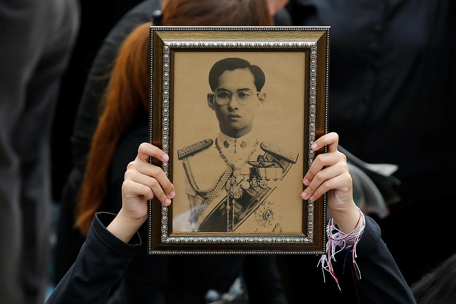 A Thai mourner holds a portrait of the late King Bhumibol Adulyadej outside the Grand Palace in Bangkok on Oct 22, 2016. PHOTO: REUTERS