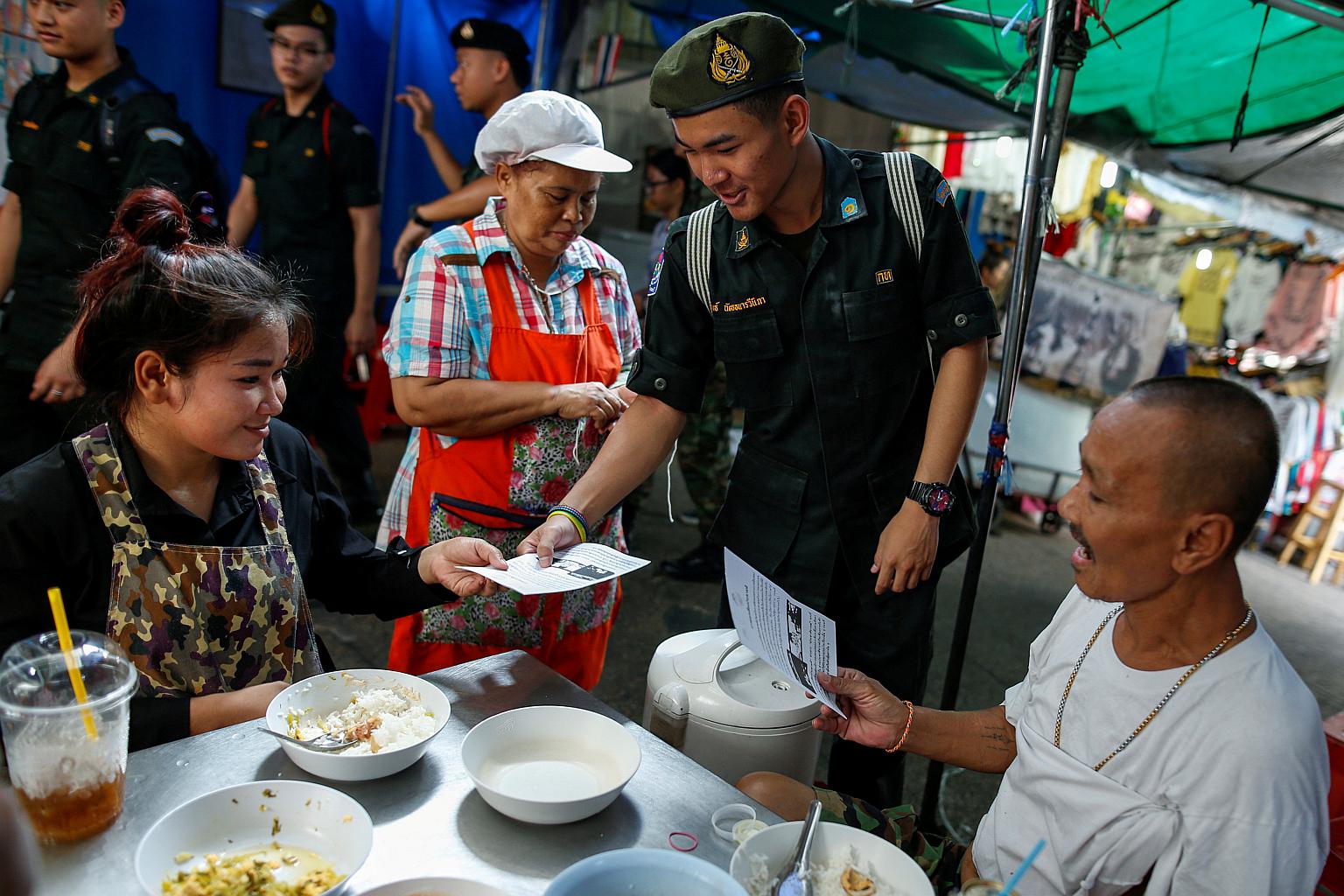 Mr Chatree Pensomboon, a second-year student soldier from Marialai School in Bangkok, said he did not think he was being asked to do anything political. "I look at this as a kind of social work," he said.