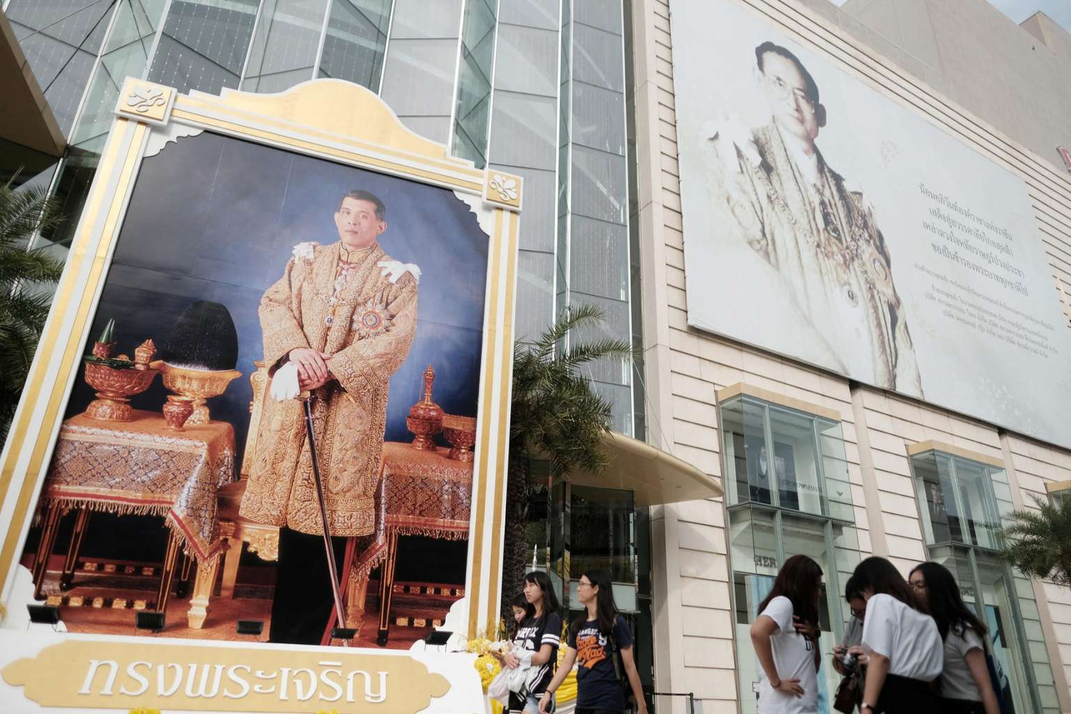 Portraits of Thailand's King Maha Vajiralongkorn Bodindradebayavarangkun and the late King Bhumibol Adulyadej are displayed at a department store in central Bangkok, Thailand, on Jan 17, 2017.