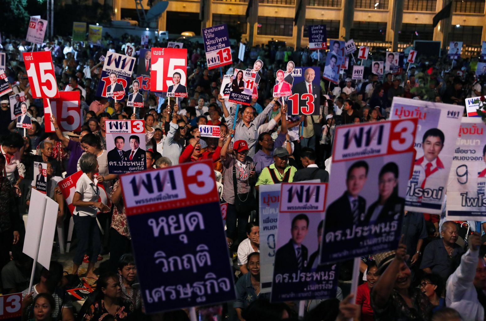 Supporters of Pheu Thai Party attend the election campaign in Bangkok on Feb 15, 2019.