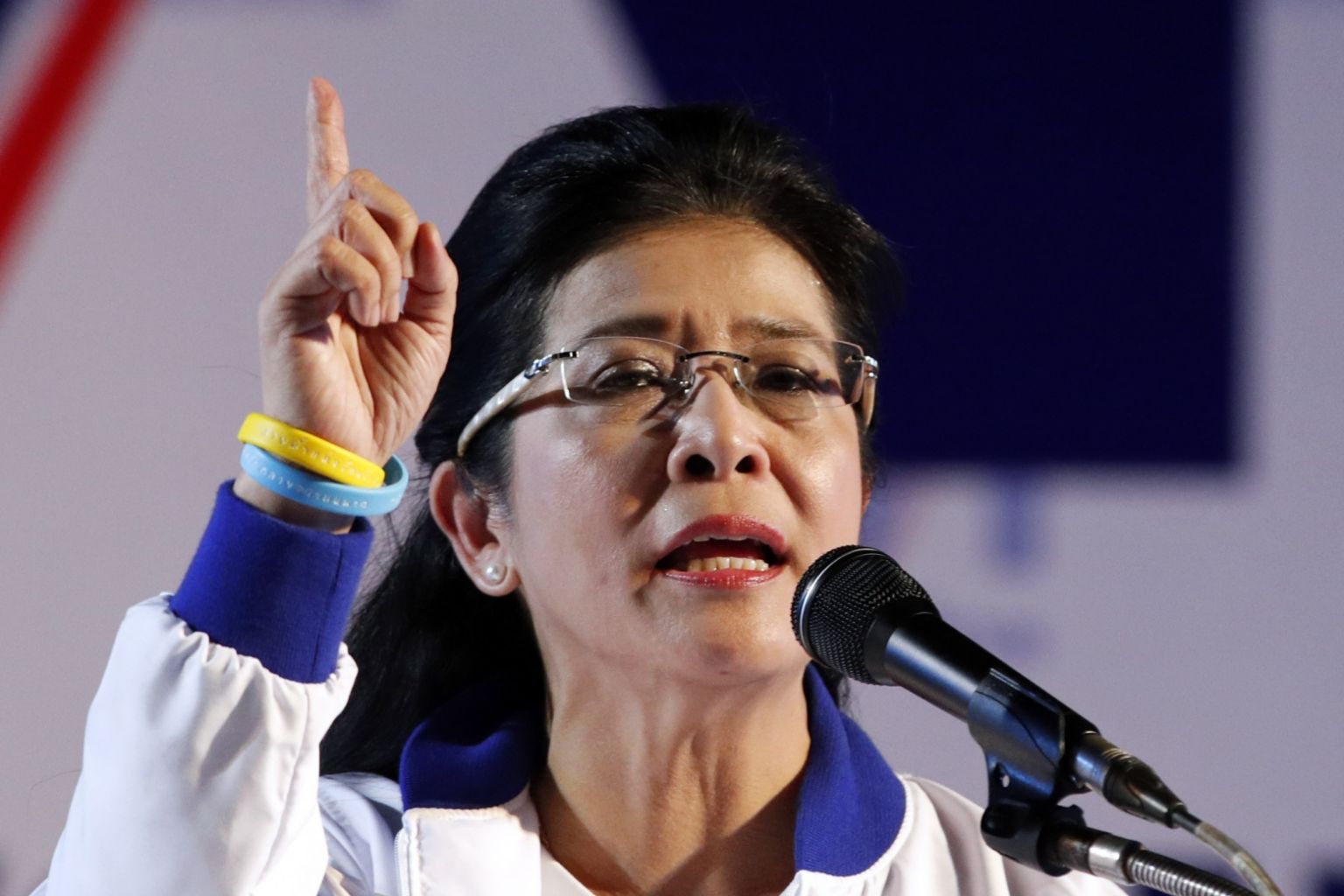 Sudarat Keyuraphan, Pheu Thai's top prime ministerial candidate, speaking to supporters during a campaign rally in Bangkok, Thailand, on Feb 15, 2019.