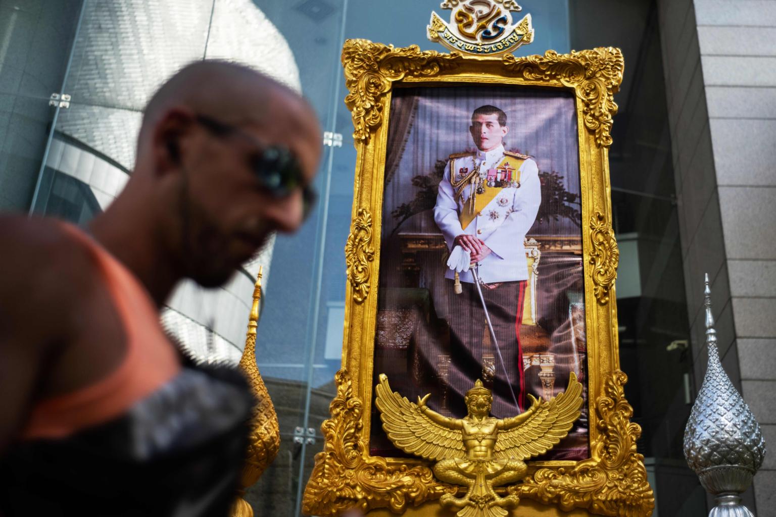 A tourist walks past a portrait of Thailand's King Maha Vajiralongkorn in Bangkok, on May 1, 2019, ahead of his coronation that will take place from May 4 to 6.