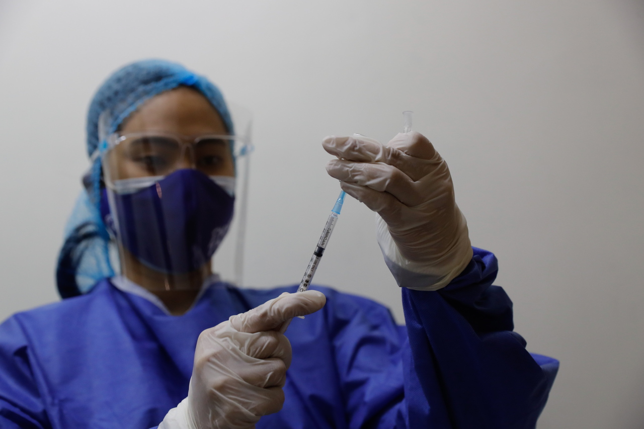 A pharmacist puts a Covid-19 vaccine into a syringe at the Medical City hospital in Metro Manila on Feb 18, 2021.