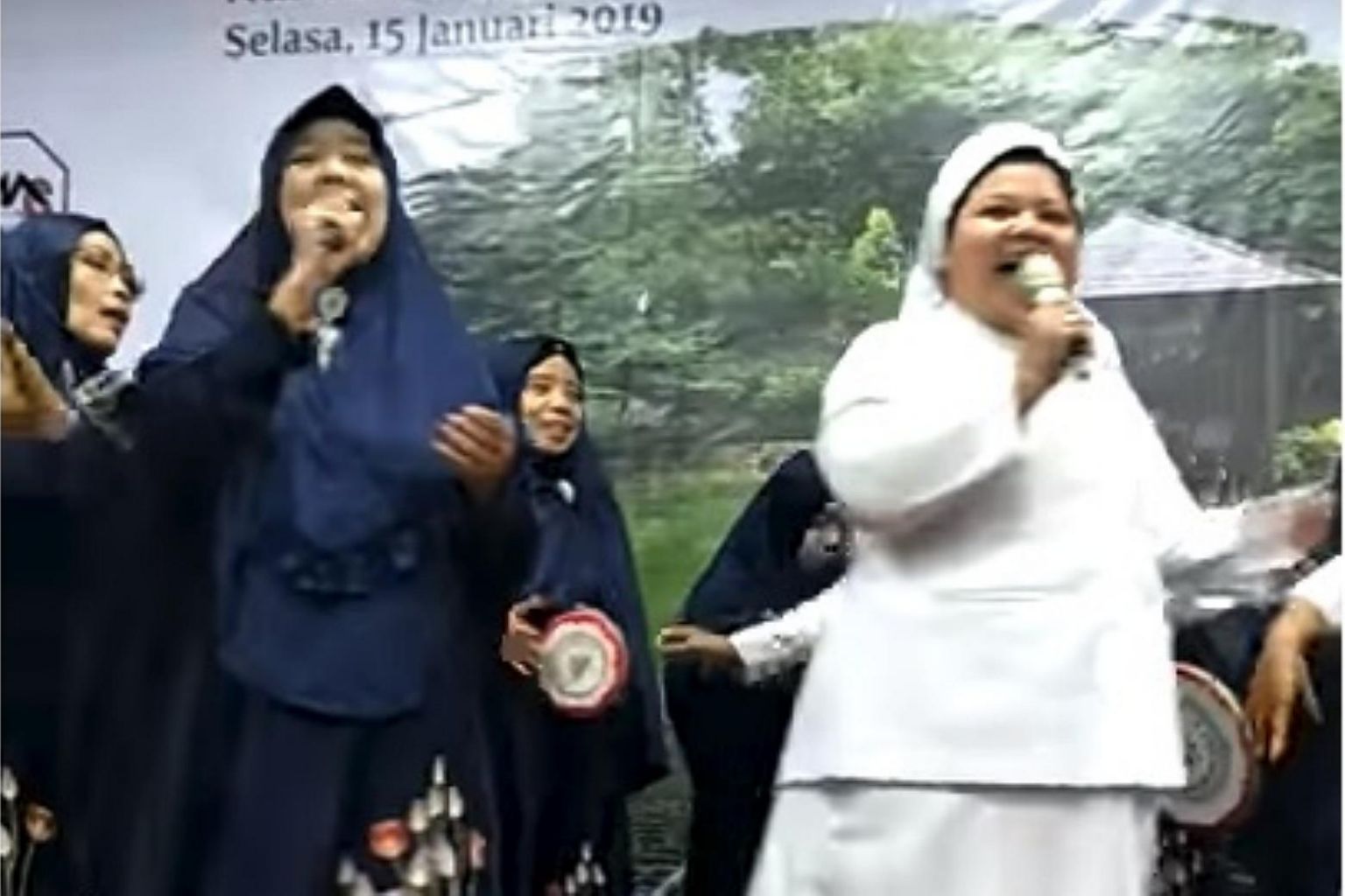 The song performed by the group was called Jilbab Putih (White Headscarf) and Sister Yunita pointed to her own white headscarf when singing the lyrics.