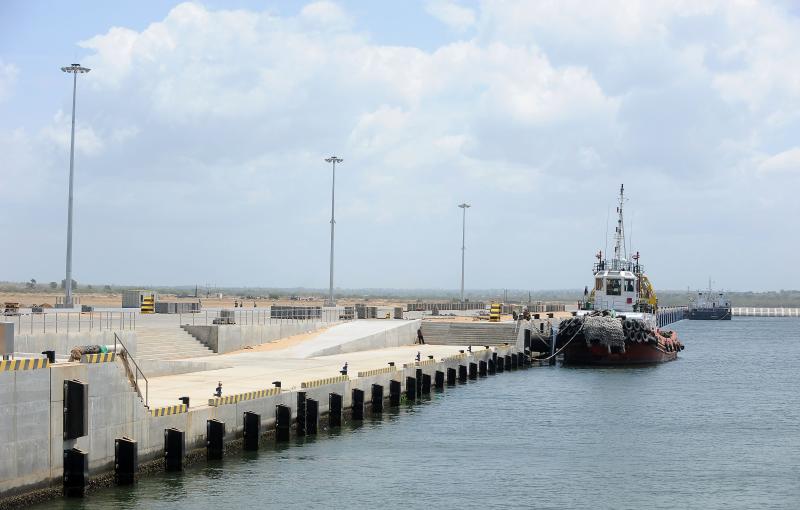 A barge is berthed at the new port in Hambantota, Sri Lanka, in 2011.