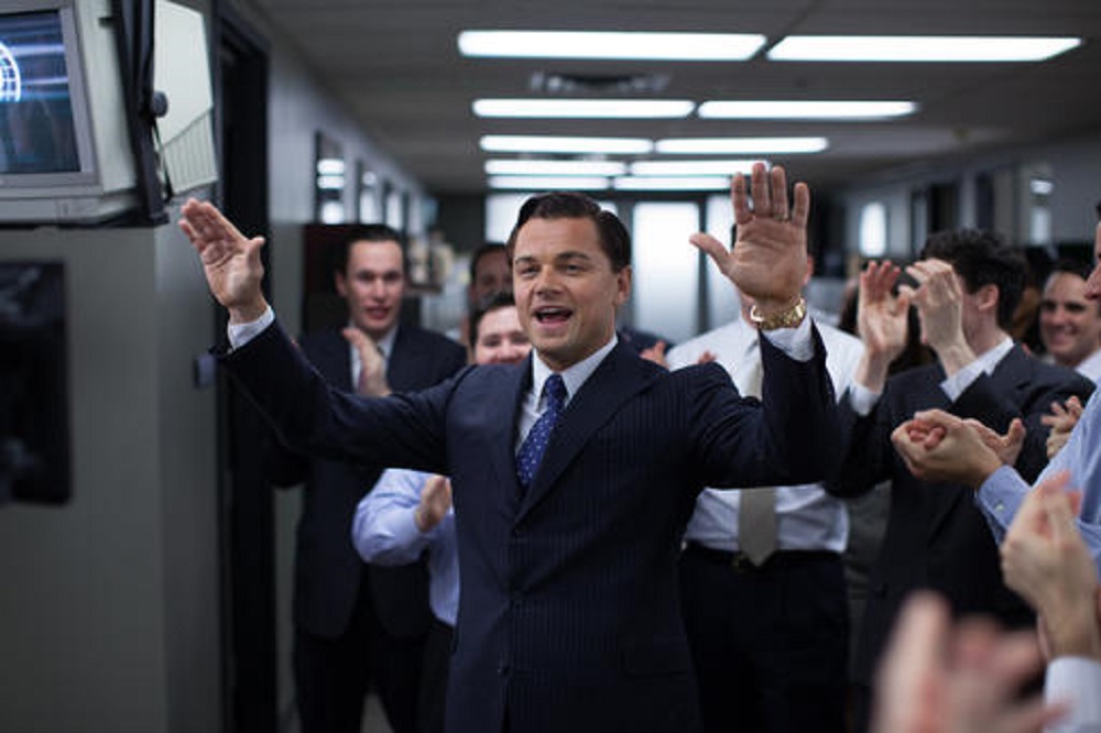 Cinema still of The Wolf Of Wall Street, starring Leonardo DiCaprio.